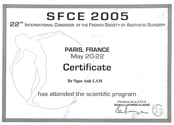 + 2005: Thực hành tạo hình mỡ tại clinique của Giáo sư Pierre F. Fournier.