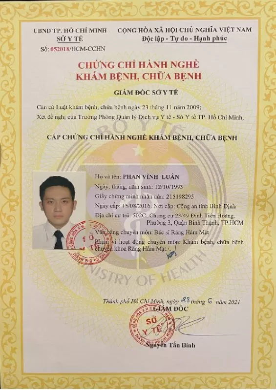 Bác sĩ Phan Vĩnh Luân là minh chứng sống động cho tinh thần không ngừng học hỏi và cống hiến trong lĩnh vực nha khoa. Với mỗi bệnh nhân, bác sĩ không chỉ là người chữa bệnh mà còn là người bạn đồng hành, mang đến sự an tâm và niềm tin vào một nụ cười hoàn hảo. Không phụ lòng tin tưởng của khách hàng, bác sĩ Luân luôn cống hiến và tận tụy, đảm bảo rằng mỗi bệnh nhân đều có được nụ cười tự tin và khỏe mạnh.