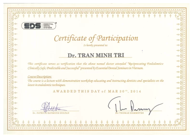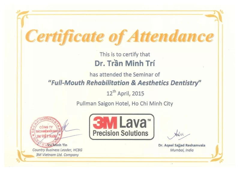 Một ca điều trị đặc biệt khác cũng đòi hỏi chuyên môn vô cùng cao và căng thẳng không kém chính là cho một bác sĩ vừa là đồng nghiệp, vừa là đàn anh của bác sĩ Trí, với tình trạng sai khớp cắn rất phức tạp, có ảnh hưởng đến khớp thái dương hàm. Bên cạnh đó còn bị nha chu và mòn răng trầm trọng. Ban đầu, bác sĩ Trí băn khoăn về trường hợp này rất nhiều, và mất nhiều thời gian để nghiên cứu, hội chẩn với các chuyên gia sâu khác. Sau đó, khi đã hoàn thành 2 tháng điều trị với phương pháp phục hồi khớp cắn tốt nhất hiện nay của giáo sứ JEAN DANIEL ORTHLIEB, người bạn đồng nghiệp của bác sĩ Trí đã có được nụ cười trắng sáng khỏe mạnh và có thể ăn nhai tốt. Có thể nói, quá trình điều trị diễn ra tương đối căng thẳng, nhưng kết quả hoàn hảo cuối cùng khiến bao nhiêu tâm huyết của bác sĩ Trí hoàn toàn xứng đáng.